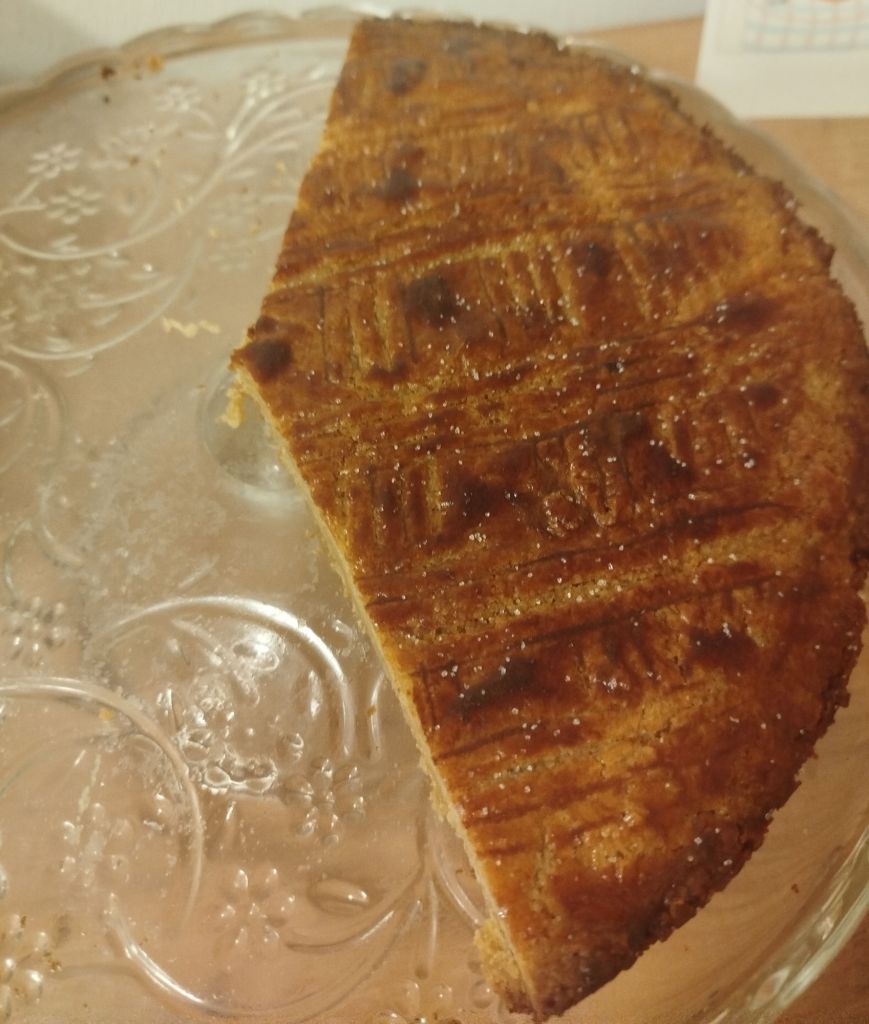 I pressed the dough into a form lined with parchment, making sure to spread it evenly, then brushed the surface with the rest of the beaten egg and used a fork to create the design you see in the picture, and that you probably see better in the recipe I linked. Then off in the oven it went, at 180°C (355 Fahrenheit) for a little under 25 minutes (the recipe calls for 30 minutes, but my oven pulls no punches).