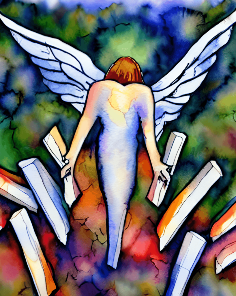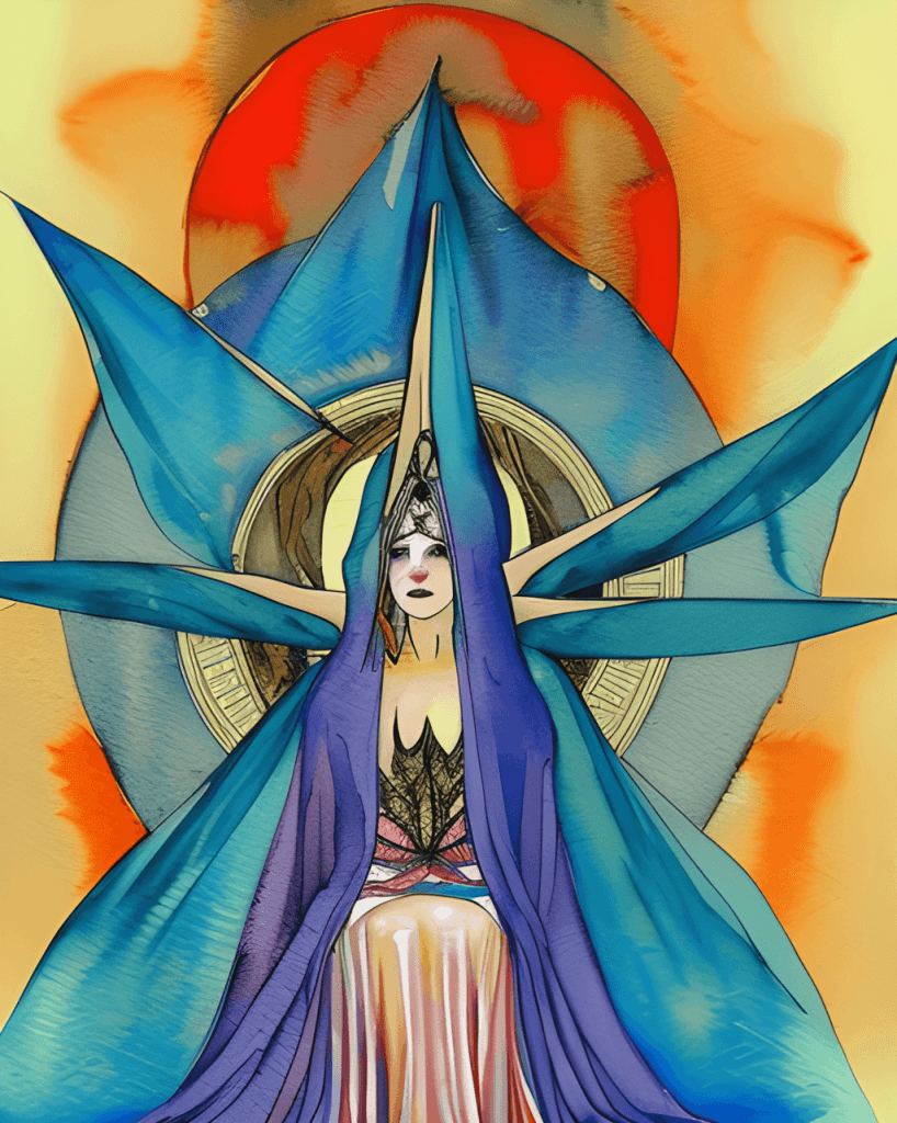 WordPress’ AI trying to come up with a picture for the Seven of Pentacles post. Sounds like one of those crappy novelty tarot decks to me