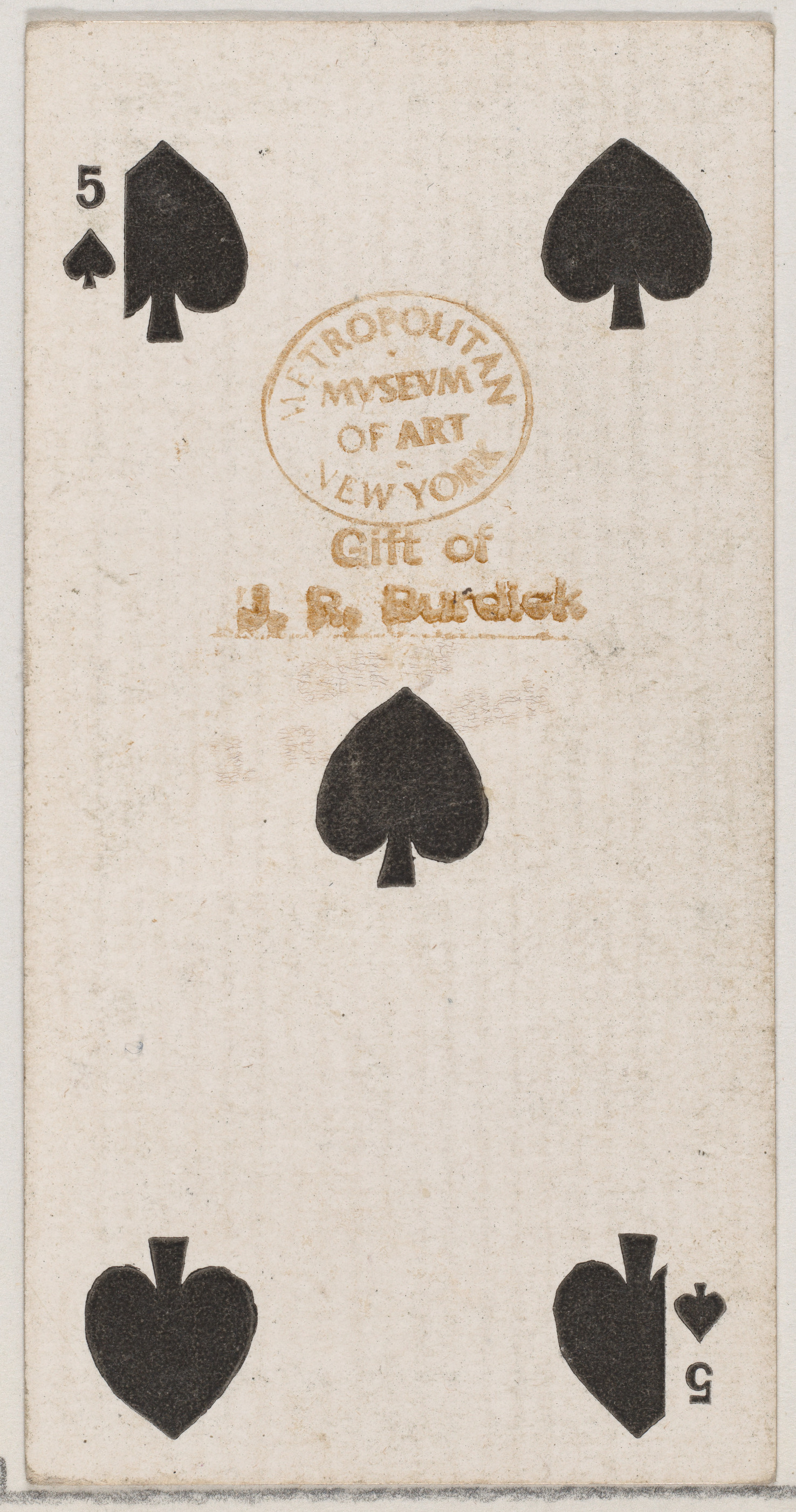 In cartomancy with playing cards, the Five of Spades (5♠) is the card of imprisonment.
