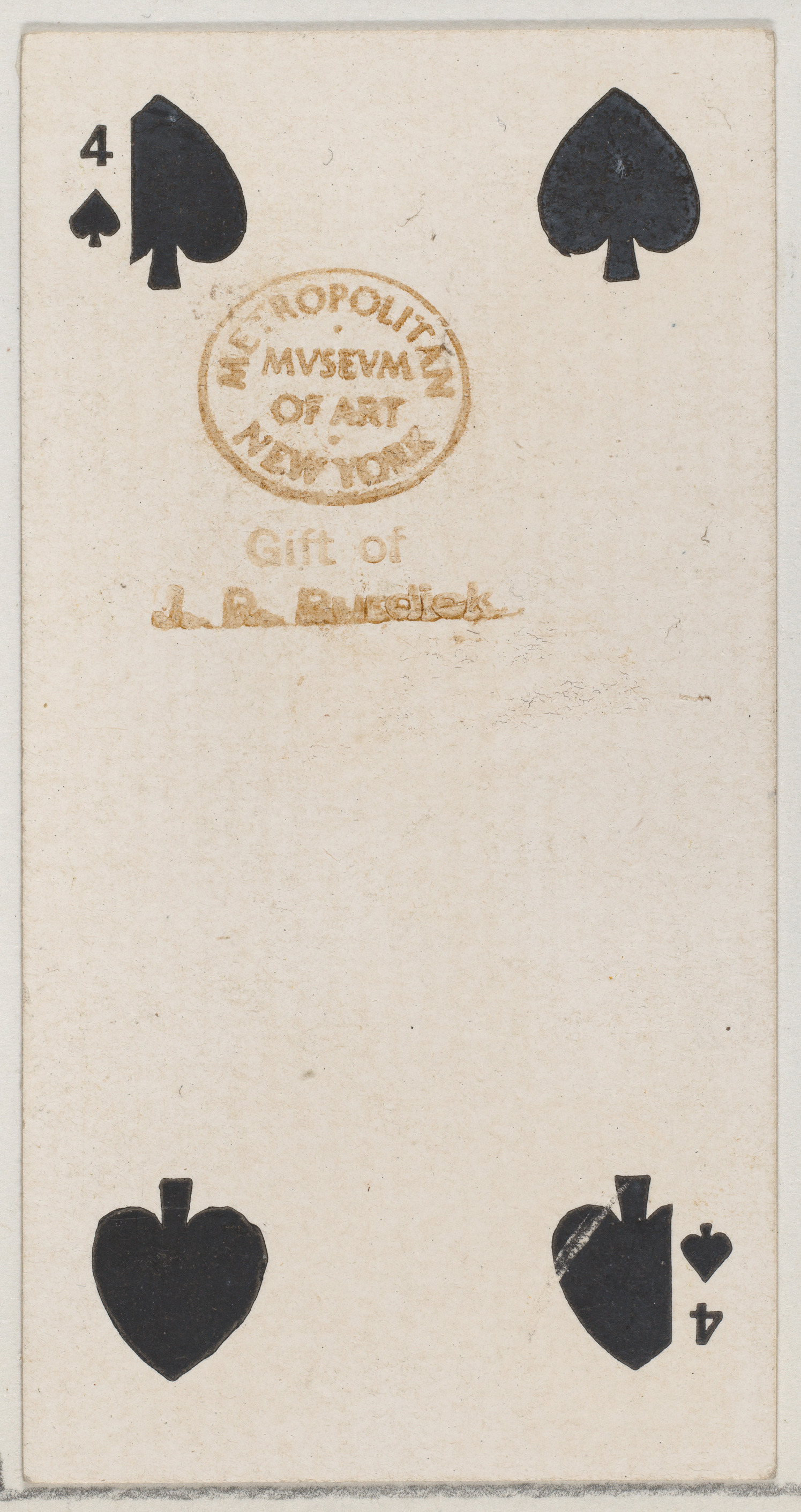 In cartomancy with playing cards, the Four of Spades (4♠) is a card of blockage.