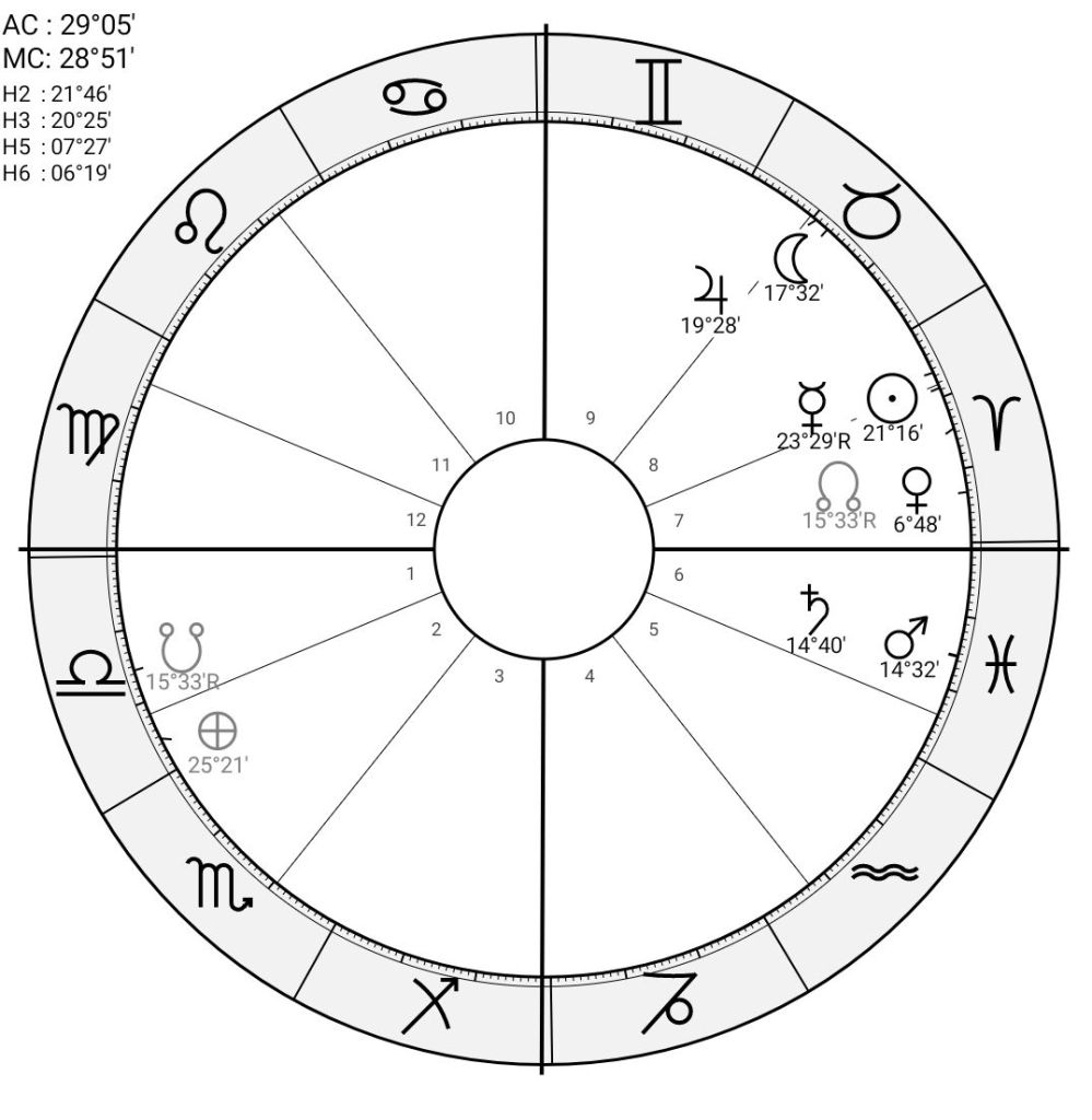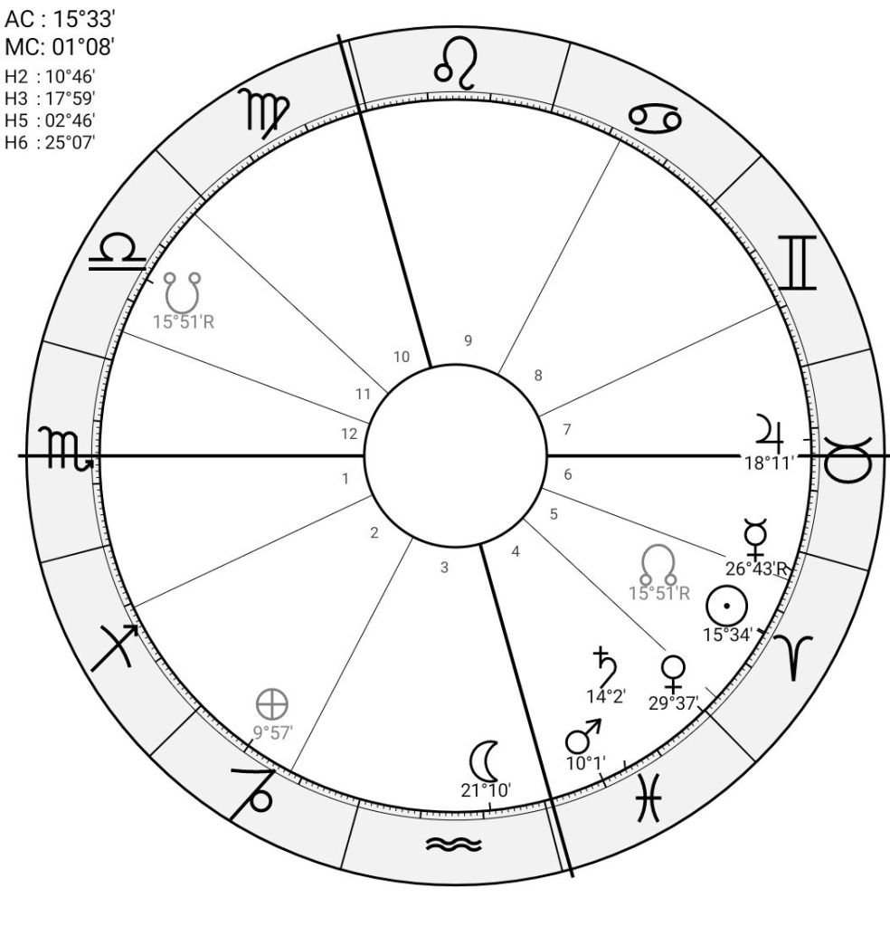 Since I’ve started studying horary astrology, my teacher has encouraged me to take on questions to learn on battlefield, as it were. I probably only need some exra push to start offering cheap readings here. This horary was asked by a social media contact of mine, who wants to know how her mental health will evolve.