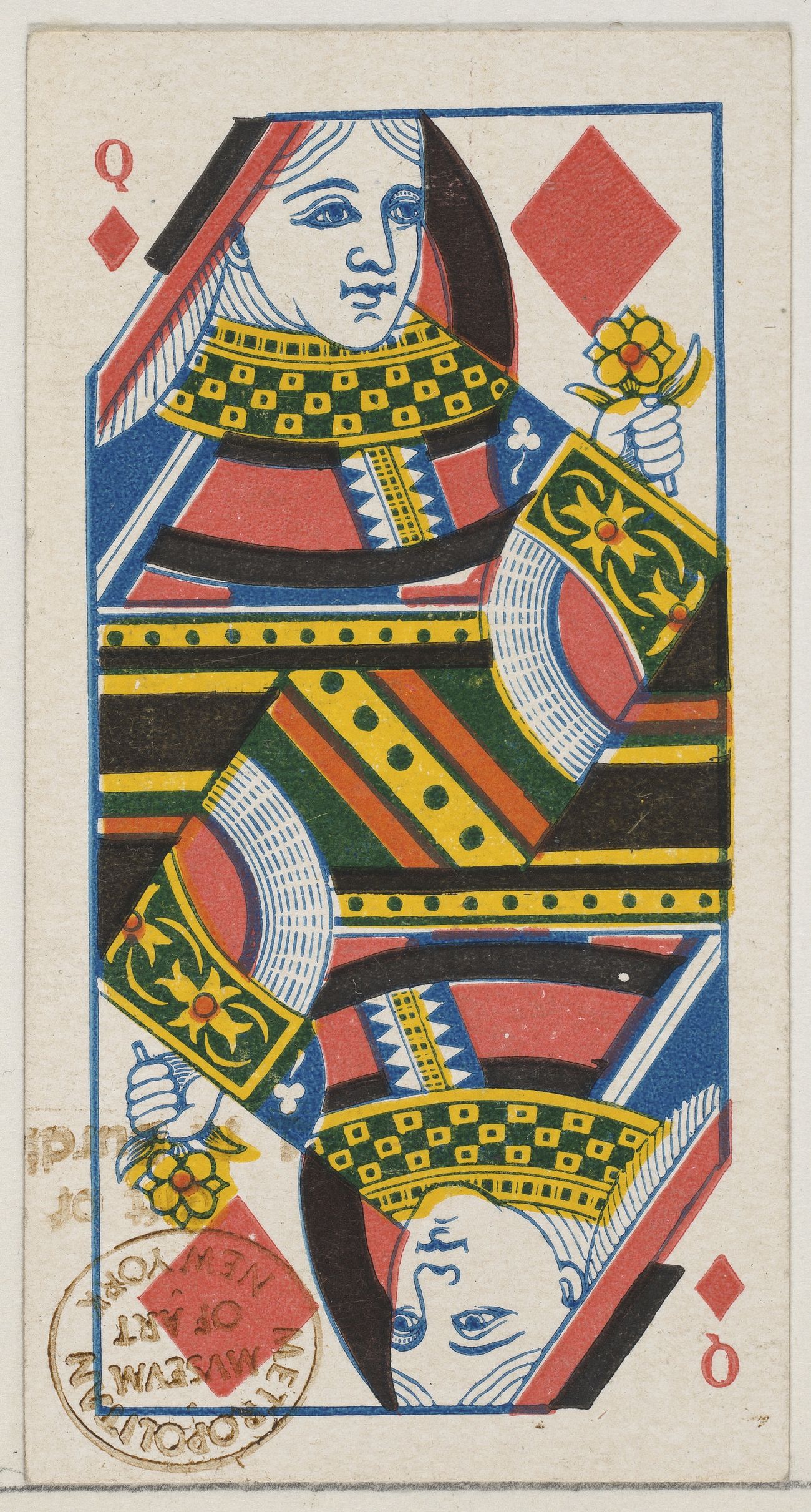 In material readings the two Diamond figures are more positive, as they signify wealthy people. This is especially good if the querent is looking for a job–the presence of a wealthy person together with appropriate cards, can indicate finding employment, i.e., a wealthy person to work for. Traditionally this is especially true for the King of Diamonds, but nowadays it may happen with the Queen as well.